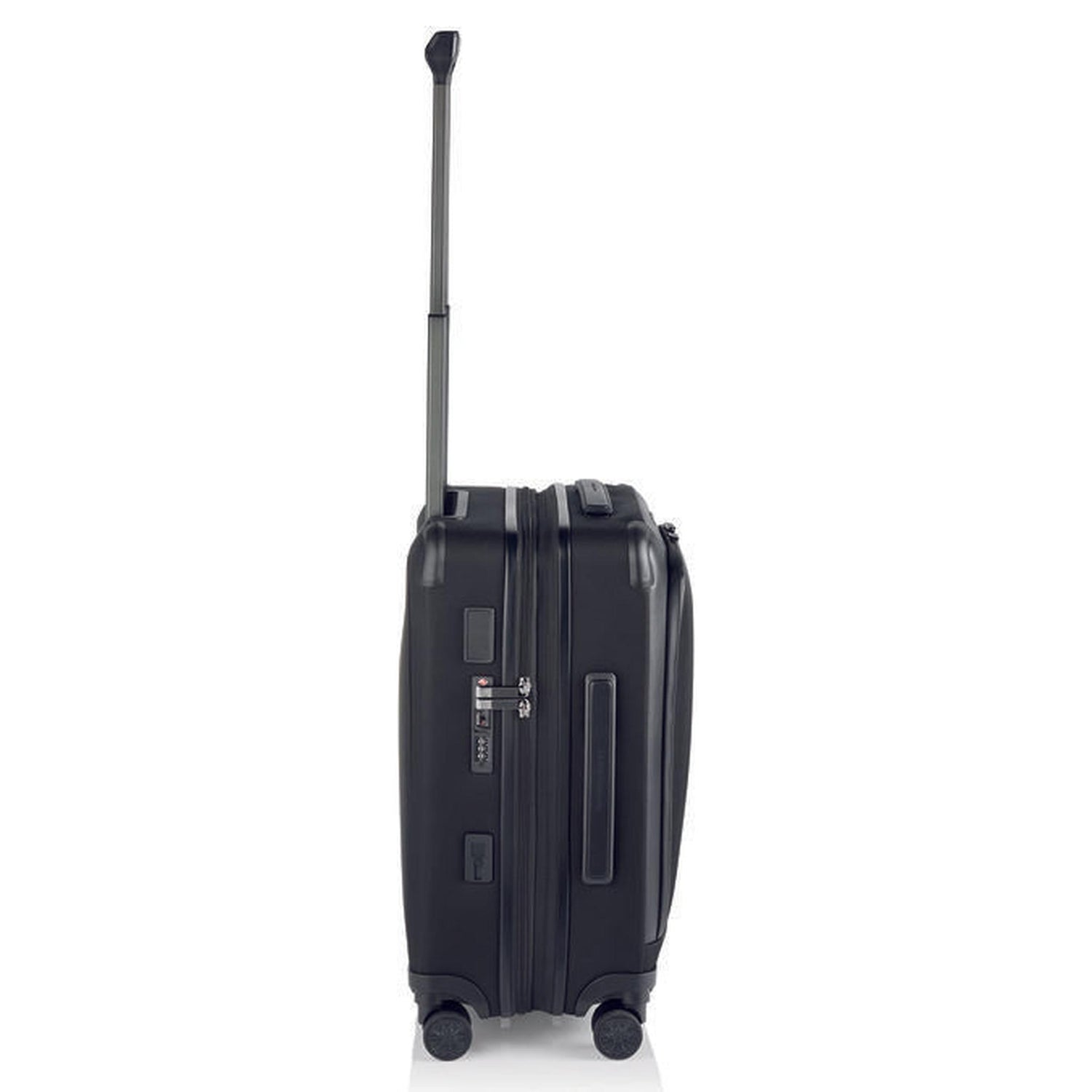 Valuables and smaller essentials can be stored in the additional front pocket, which features a business organizer. Particularly quiet wheels, a high-quality handle system and additional handles on the side and the top ensure maximum comfort when on the go. The protection pad on the trolley's impact-resistant upper corners protects it from damage.