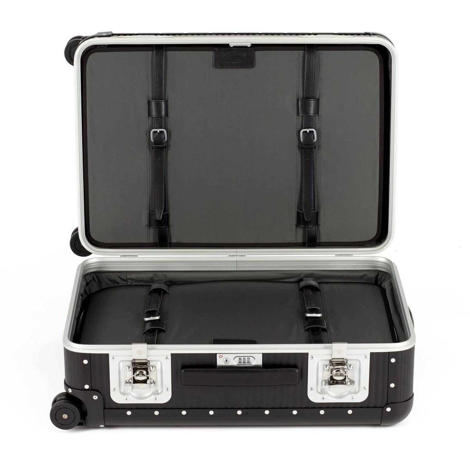 100% Aluminum 4-wheeled checked luggage, made in Italy. The dual wheels guarantees great stability and smoothness. The suitcase has a TSA lock combined with two maxi butterfly locks that ensures safety. The handles are in fine Italian leather. The interior of the suitcase includes handcrafted belts in fine Italian leather. The lining is padded and removable. The interior organizer allows for optimum arrangement of contents. Spinner 76 is ideal for a 10-11 day journey.