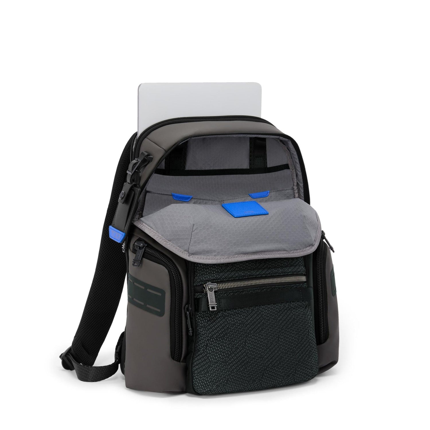 Modern and versatile, this backpack is the ultimate everyday bag. It's ideal for commutes to work or school, and for travels that take you further afield. Zipper expansion allows for extra room when needed, and a multitude of organizational pockets for everything from your laptop to your phone ensures you can easily pack it all in and carry it in comfort. The addition of interior and exterior daisy chains makes it compatible with TUMI+ accessories to further enhance its functionality. Sold separately. Alpha Bravo brings you rugged yet refined pieces that will take you from the office to the outdoors and beyond.