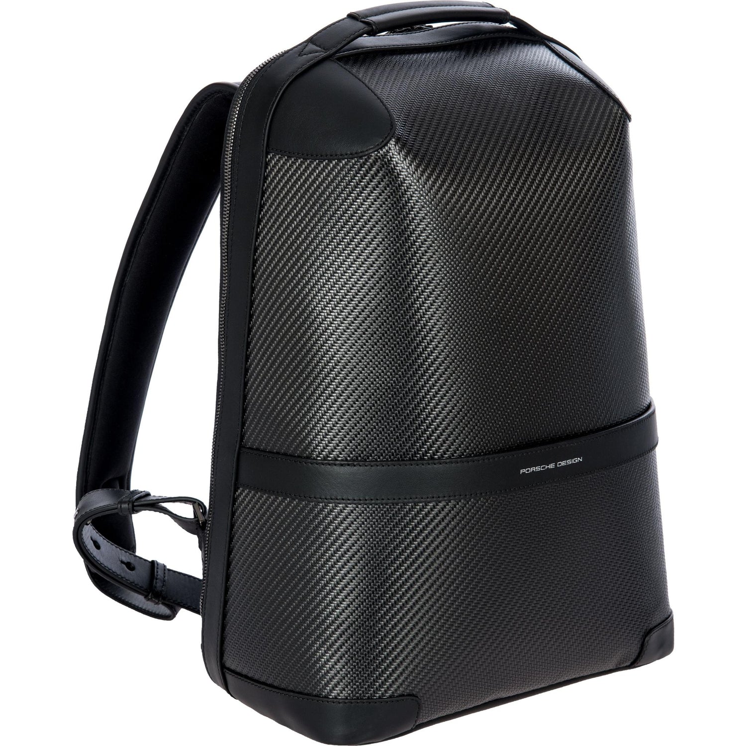 Fascination Carbon. The high-tech material from motorsport gives the Porsche Design Carbon Backpack - like all models in the Porsche Design Carbon Collection - its unmistakable design DNA. Lightweight, textured carbon fiber fabric and the finest box calf leather, combined in an iconic, minimalist design, make this backpack an exclusive, timelessly stylish companion. The new model variant is characterized by optimum comfort and functionality.