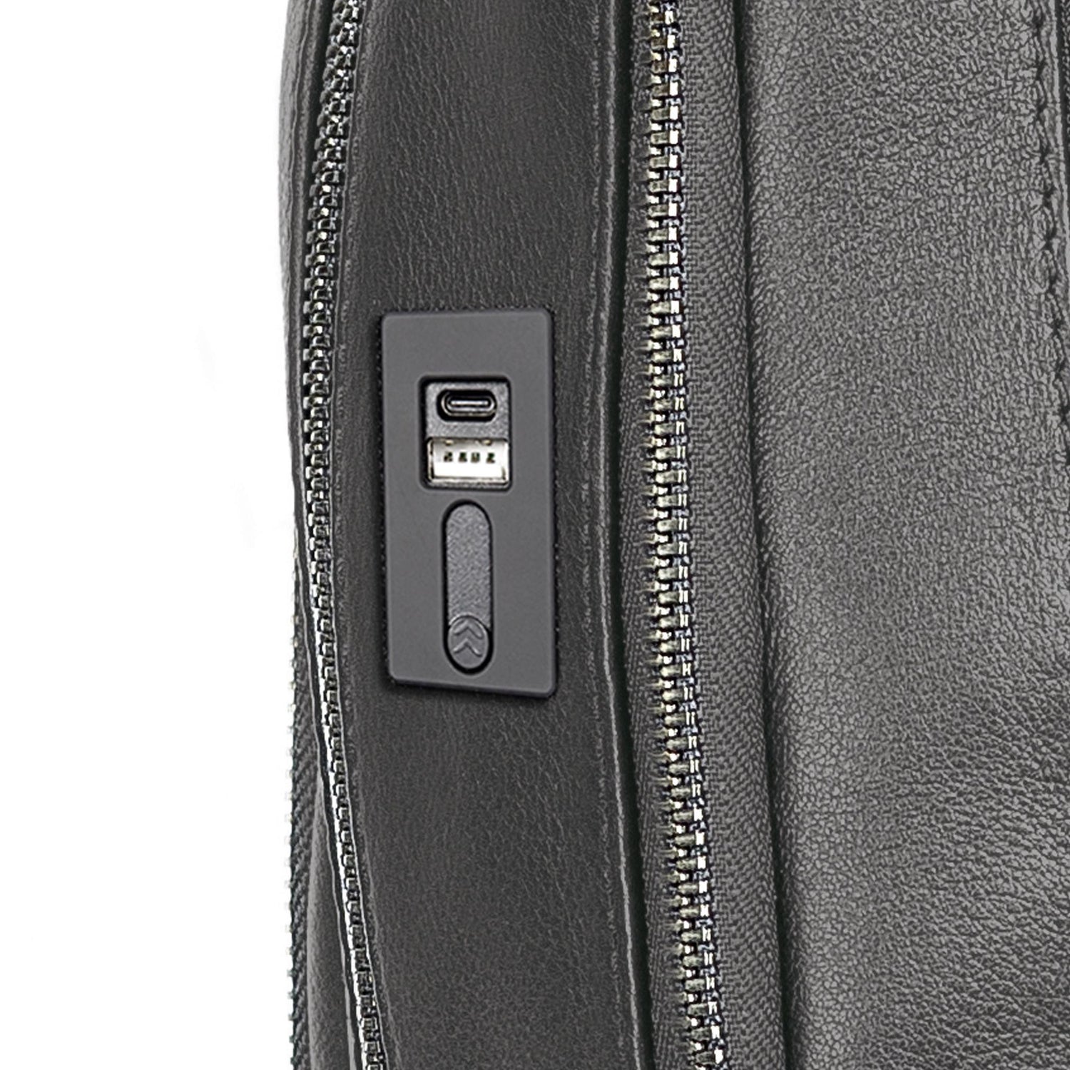 • Separate front compartment with business organizer and USB plug-in, two side pockets