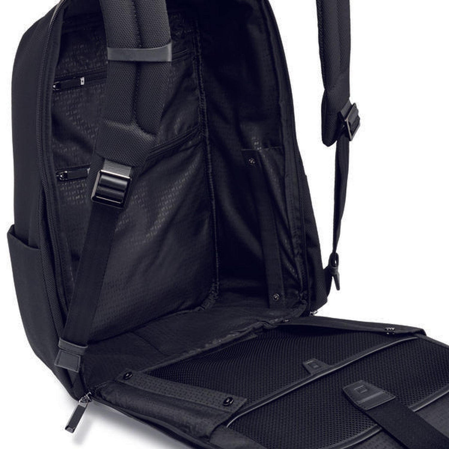 The front compartment with business organizer holds all important small items. Valuables such as keys can be stored in the pocket hidden in the trolley link. The softly padded backside and padded shoulder straps make sure that the backpack can be worn comfortably.