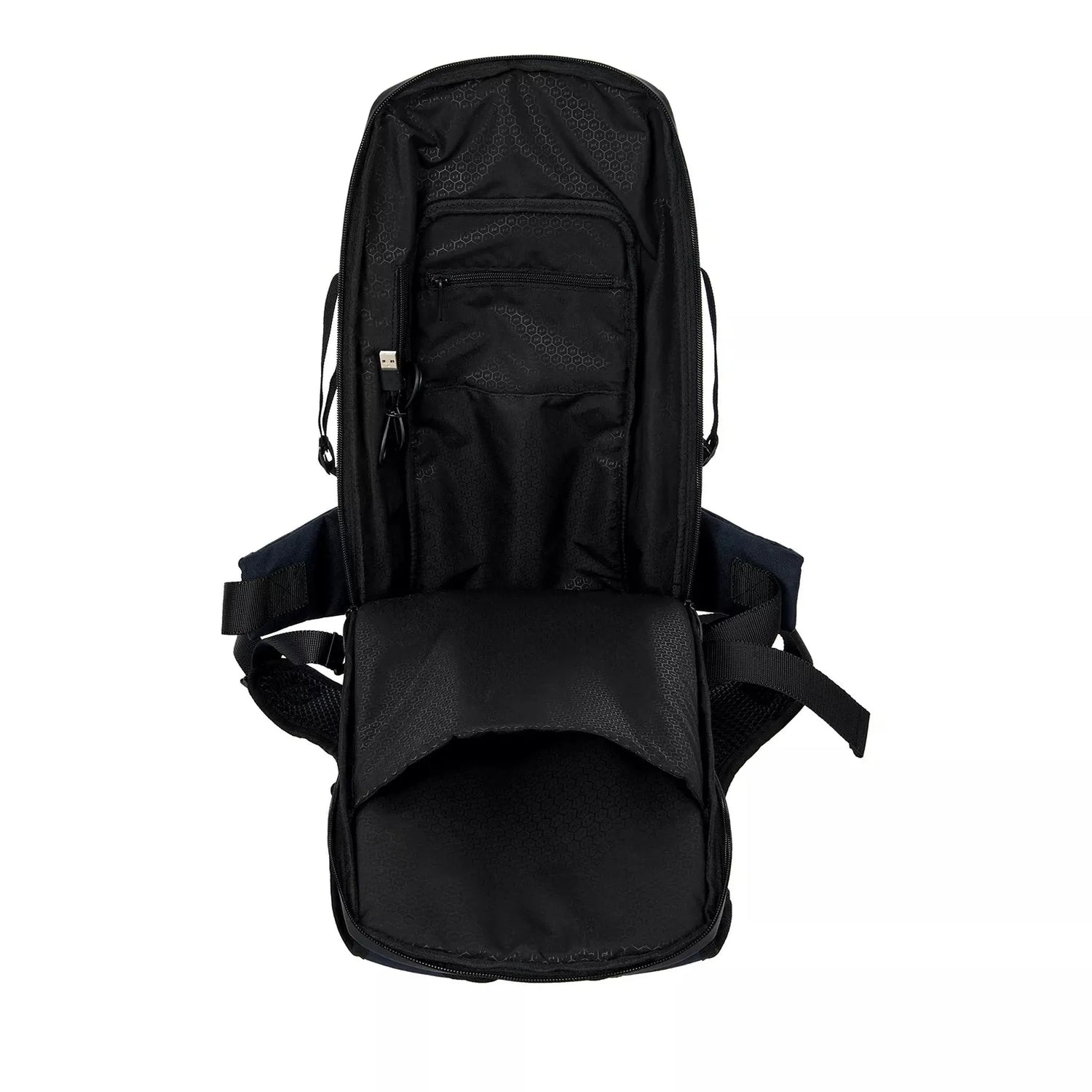 Engineered for the modern commuter, the Brics Porsche Design Urban Eco Cycling Backpack merges premium craftsmanship with environmental consciousness. This purpose-built bike pack features a streamlined silhouette with a dual-zip main compartment housing a padded 13" laptop sleeve and tablet pocket for secure device storage. The ergonomic design incorporates stabilizing side wings that flow into an adjustable hip belt with fit-lock technology, complemented by padded shoulder straps and a chest strap for balanced weight distribution.