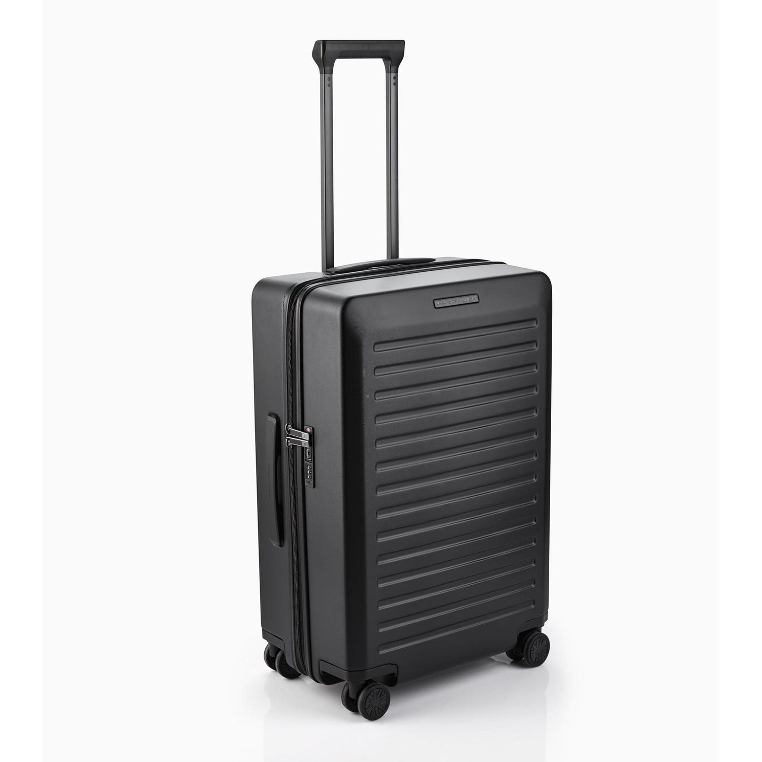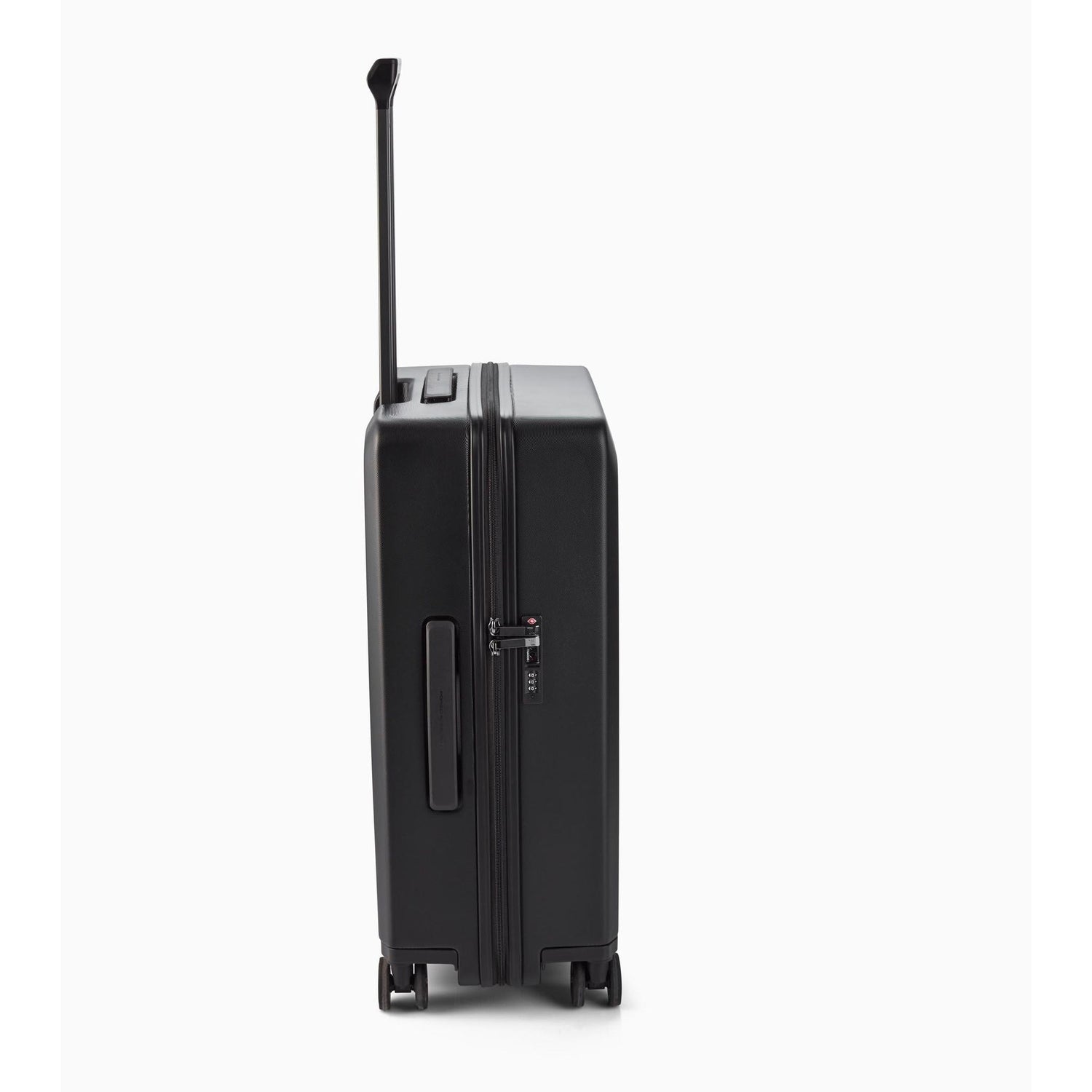 The medium Porsche Design Roadster Hardcase 4W Trolley M amazes with a weight of just 9 lbs and its dynamic monochrome look with Porsche Signature details.