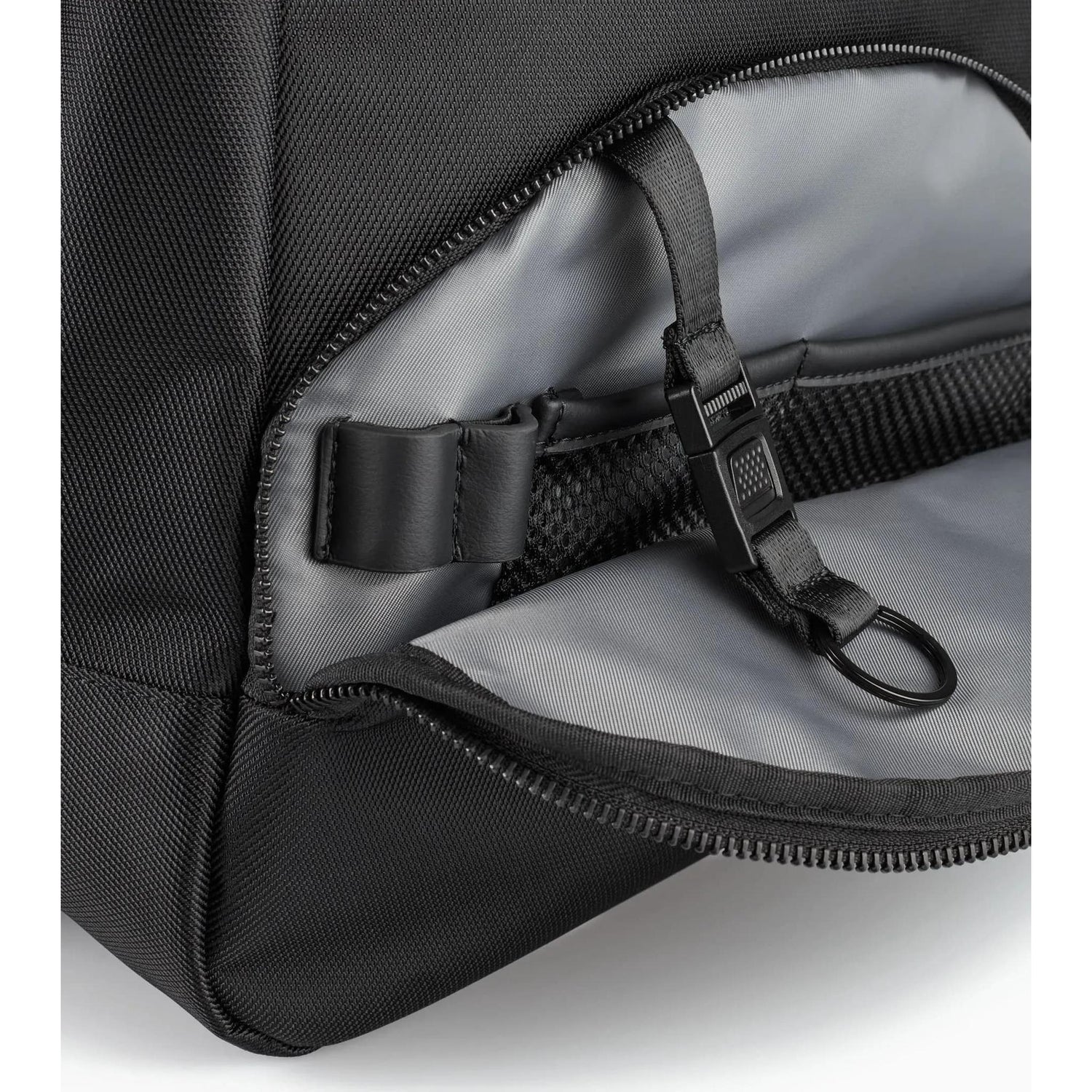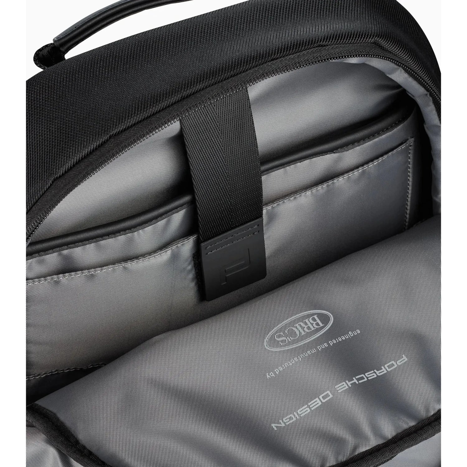 Design meets dynamism: the Voyager Nylon Collection combines performance and style with patterned, water-repellent nylon and smooth leather details as well as the iconic Porsche Design branding on the front. Practical two-way zips allow easy access to the small backpack's two main compartments: one with a padded laptop compartment, suitable for devices up to 13 inches, and the other ideal for other essentials. The front compartment with a business organizer, key holder, and an additional zip pocket make it easy to organize all your important items. The padded back is comfortable and features a trolley link for effortless travel. Comfort is also provided by the adjustable, padded shoulder straps and the sturdy top carrying handle.