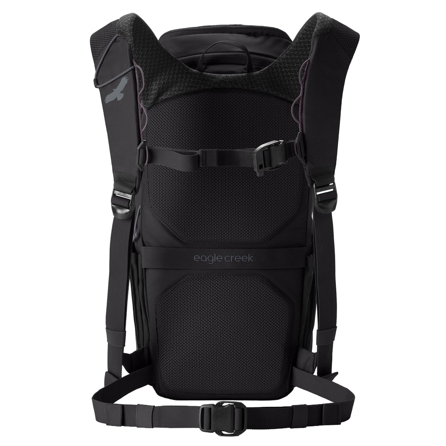 The Eagle Creek Ranger Backpack 16L delivers compact versatility without compromising on features. This streamlined 16-liter design includes an oversized front drop-in pocket, ventilated padding on the shoulder harness and back panel, and an internal hydration reservoir sleeve for sustained hydration during active pursuits. Water bottle pockets keep beverages accessible, while the stowable webbing hip belt and sternum strap with emergency whistle enhance stability and safety. A trolley pass-through strap integrates seamlessly with luggage for travel convenience, and the bike light attachment loop adds visibility options. The pack accommodates an 11-inch tablet and features engineered webbing for custom attachments, external zippered organization, a single cinch elastic pocketing system, external drop-in pocket, and key clip. Ideal for day trips, urban commuting, and minimalist travelers.