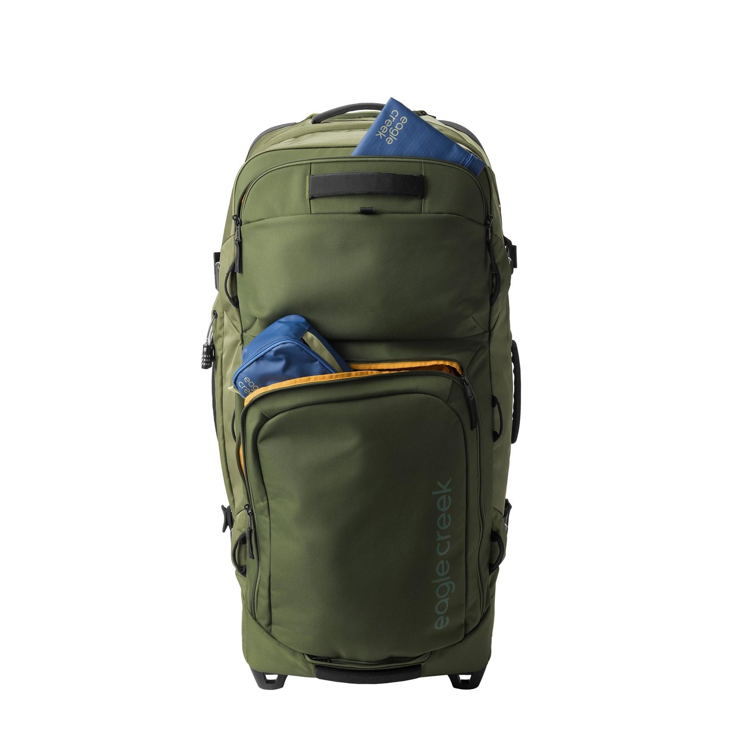 The Eagle Creek ORV Trunk 36 Inch is a rugged, sustainable storage solution with a clamshell design for easy access. Features adaptive compartment dividers, compression straps, reinforced corners, and heavy-duty wheels for reliable transport. Includes a cargo net for bulky items, lockable zippers, grab handles, and a luggage tracker pocket—built to handle demanding travel and adventure.
