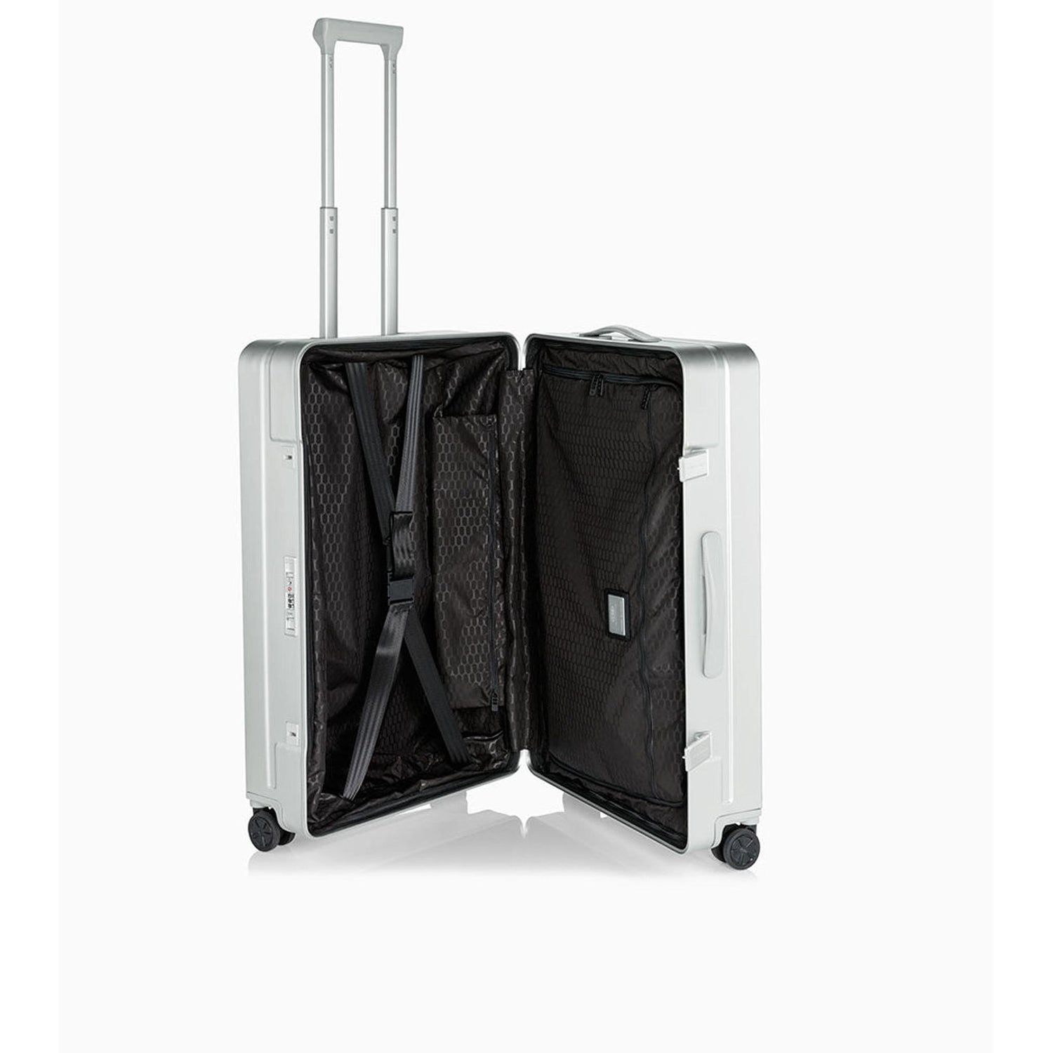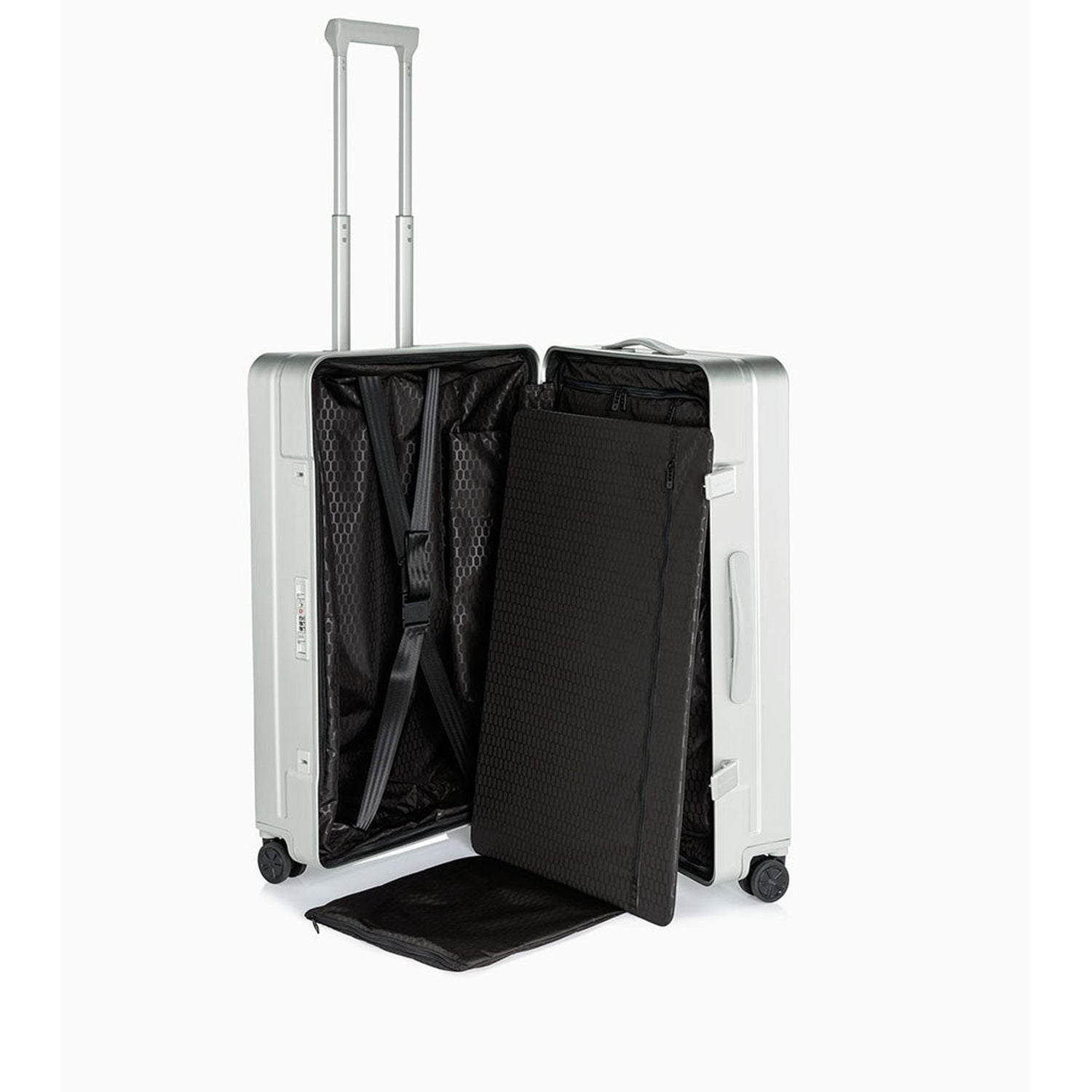 A trolley made of high-quality anodized aluminum, embodying Porsche DNA in every detail with its innovative construction. The Roadster Aluminum Luggage is ideal for business and leisure trips and offers the following features: