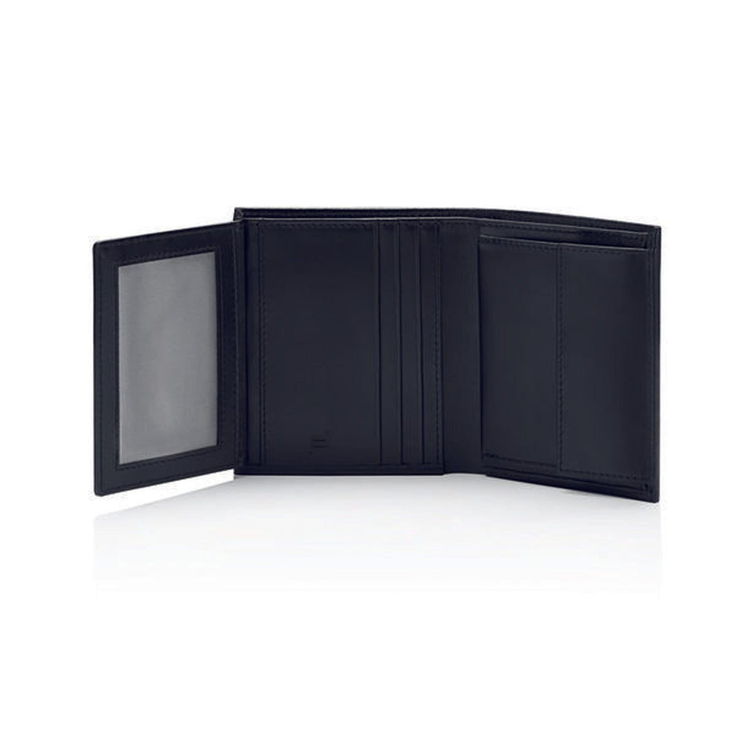 The elegant fusion of aesthetics and functionality: the Porsche Design Classic collection. High-quality, shiny smooth leather in black, seamlessly created exteriors and the characteristic metal Porsche Design logo plate give the Porsche Design Classic Wallet 6 a timeless and minimalistic style. The high-quality interior with signature design details is in line with the smart design: the vertical trifold wallet amazes through a spacious, functional interior design.