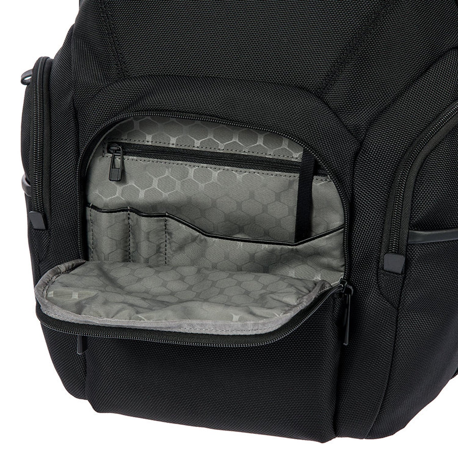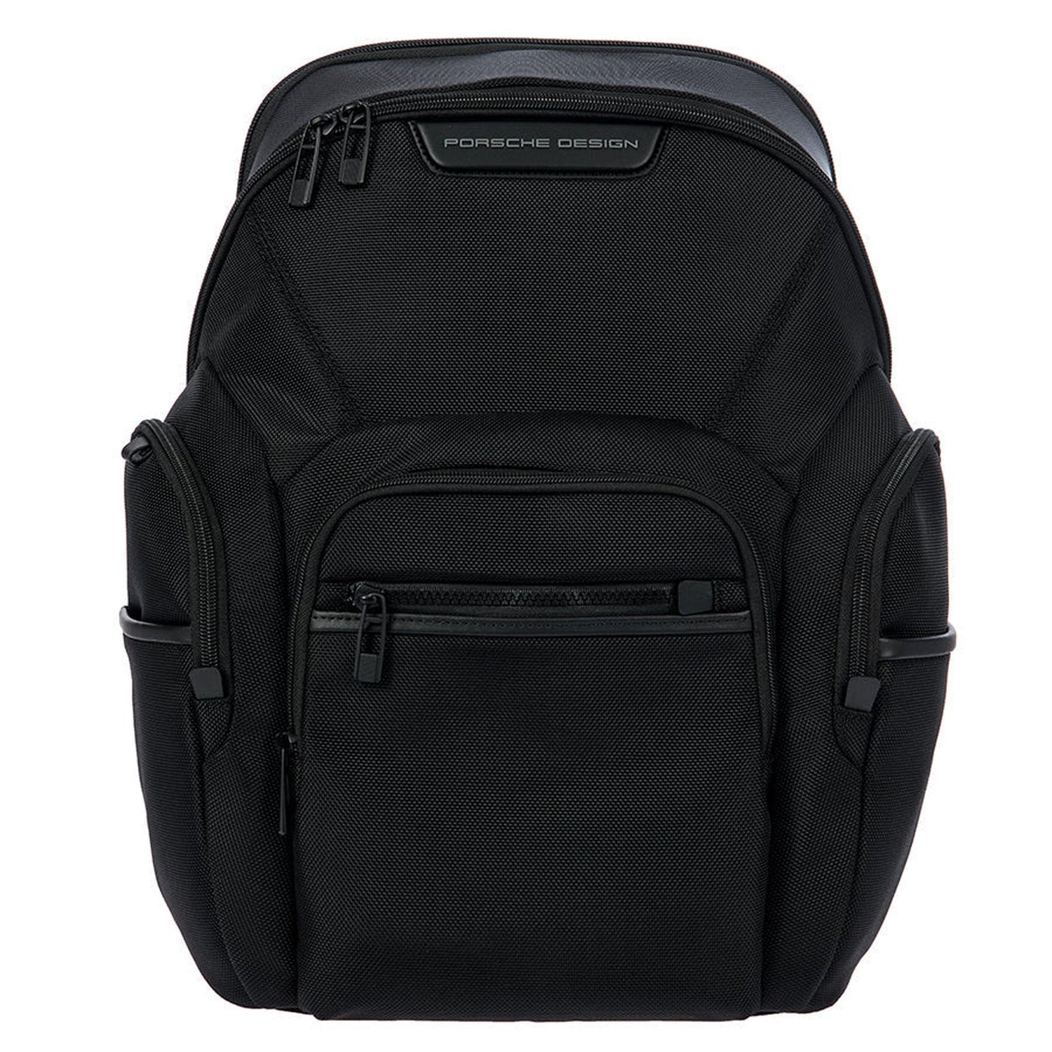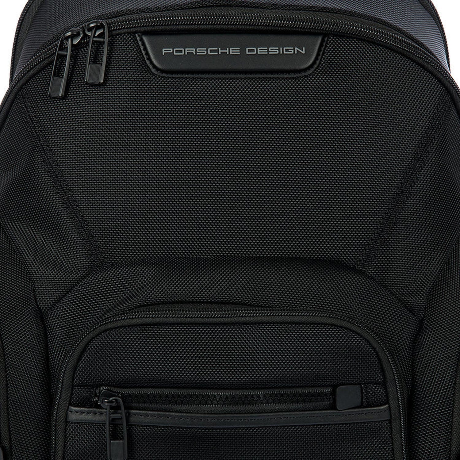 The Porsche Design Roadster Nylon Evo Backpack M expandable convinces with a puristic design and a smart arrangement full of intelligent details. Made to meet the commuters needs, the recycled nylon is water-repellent, durable and lightweight. Your 15" laptop can find a secure spot in an integrated laptop compartment found in the large main compartment. The front compartment with a business organizer holds all important small items. Valuables such as keys can be stored and protected in the pocket hidden in the trolley sleeve. Side pockets. The backside and the shoulder straps have soft padding.