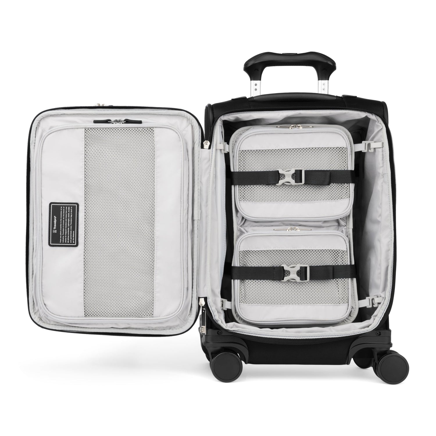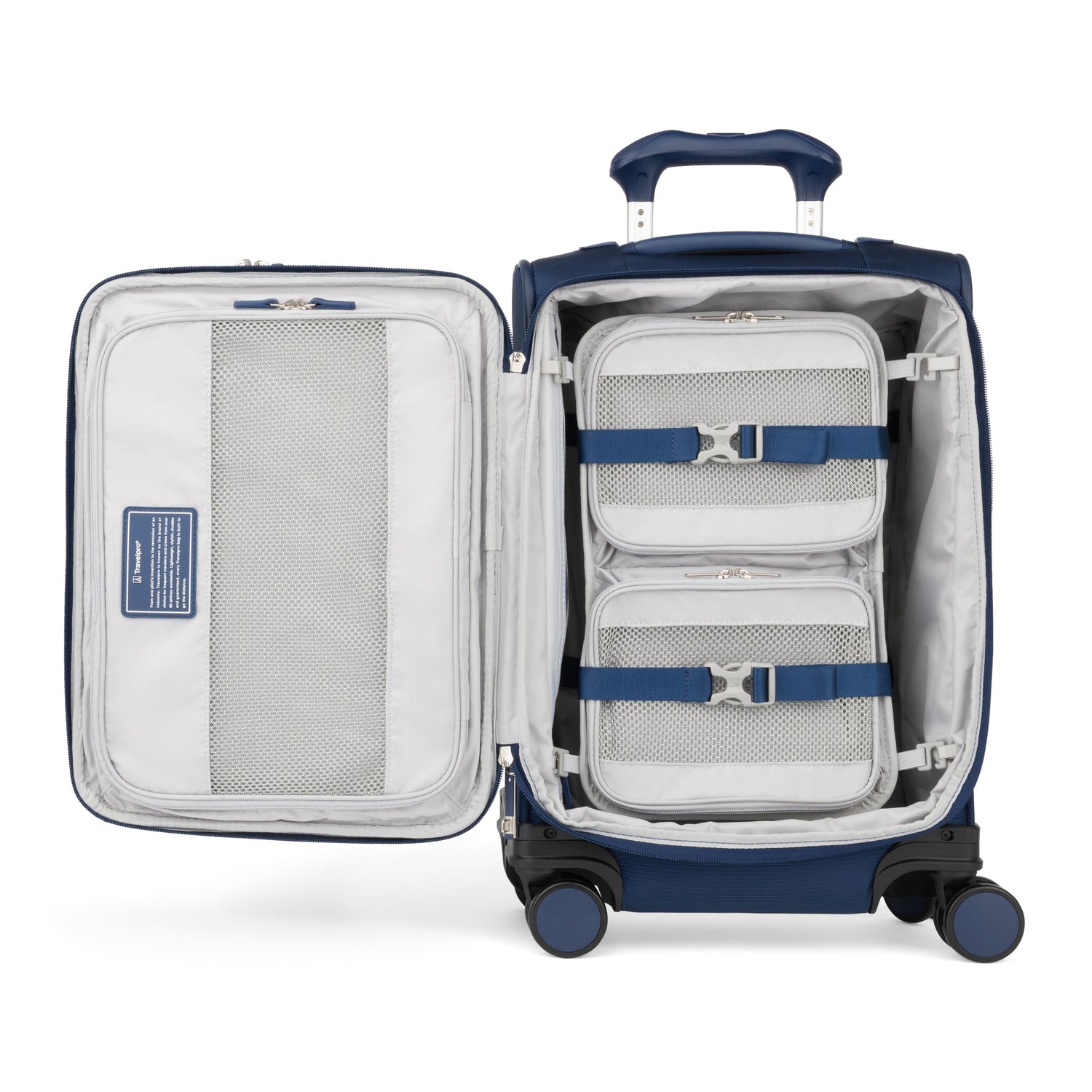 Ultimate packing versatility is yours with the durable VersaPack+ Carry-on Expandable Spinner, built to last, and sizer bin tested to fit in the overhead bins on most major US airlines. Advanced packing features maximize interior capacity and keep all contents organized and secured. A removable packing cube organizer and compression system help maximize packing space. Two shoe bags isolate your footwear for protection, while the removable laundry bag and built-in wet pocket separate damp or soiled items from everything else.