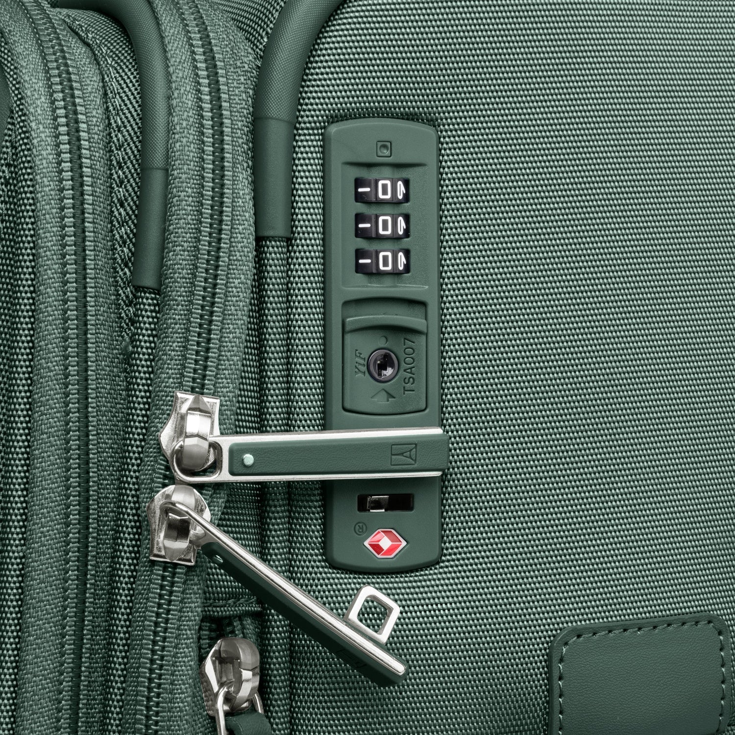Pack everything you need for a short or medium-length trip, or use this spinner to complement your other luggage. A tip-resistant, zippered expansion option increases packing space up to two inches when needed. Prefer to check it? The built-in TSA-compliant lock guards against theft while allowing authorities to unlock and relock the bag safely when required for inspection.