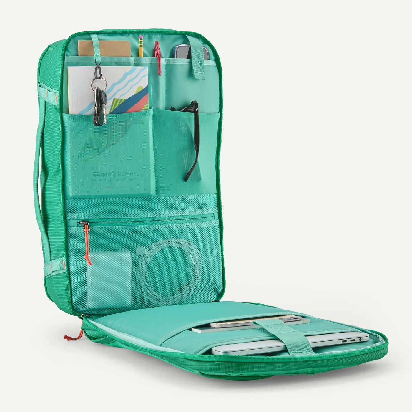 A smaller version of our iconic 45-liter Black Hole® MLC®, the 30-liter Mini MLC is also built with recycled materials and a recycled TPU laminate. This travel-savvy, soft-sided backpack has tuck-away shoulder straps, plus a quick-stash padded hip belt that doubles as a shoulder strap. For use as a duffel bag or briefcase, tuck away all the straps and carry with one of the grab handles. The Mini MLC has plenty of room to keep you moving, but the bag also meets strict carry-on requirements. Made in a Fair Trade Certified™ factory.