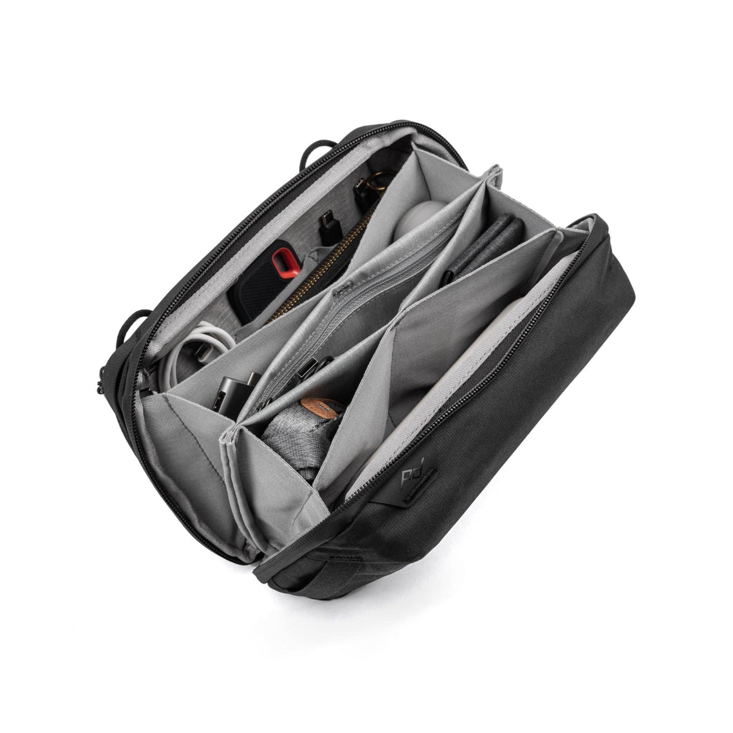 Whether storing cables, everyday gear, or travel essentials, Tech Pouch offers unrivaled organization and ease of access. Origami-style pockets create enormous spatial efficiency, letting you pack more into a smaller space while keeping your items neatly organized and easy to find. Elastic accessory loops keep items like pens, knives, SD cards, and batteries always within reach. Exterior handles and a clamshell-style opening make this pouch a delight to hold and access. External zip pocket has a cable pass-through for easy device charging. The 400D recycled nylon canvas shell is weatherproof and aesthetically clean.