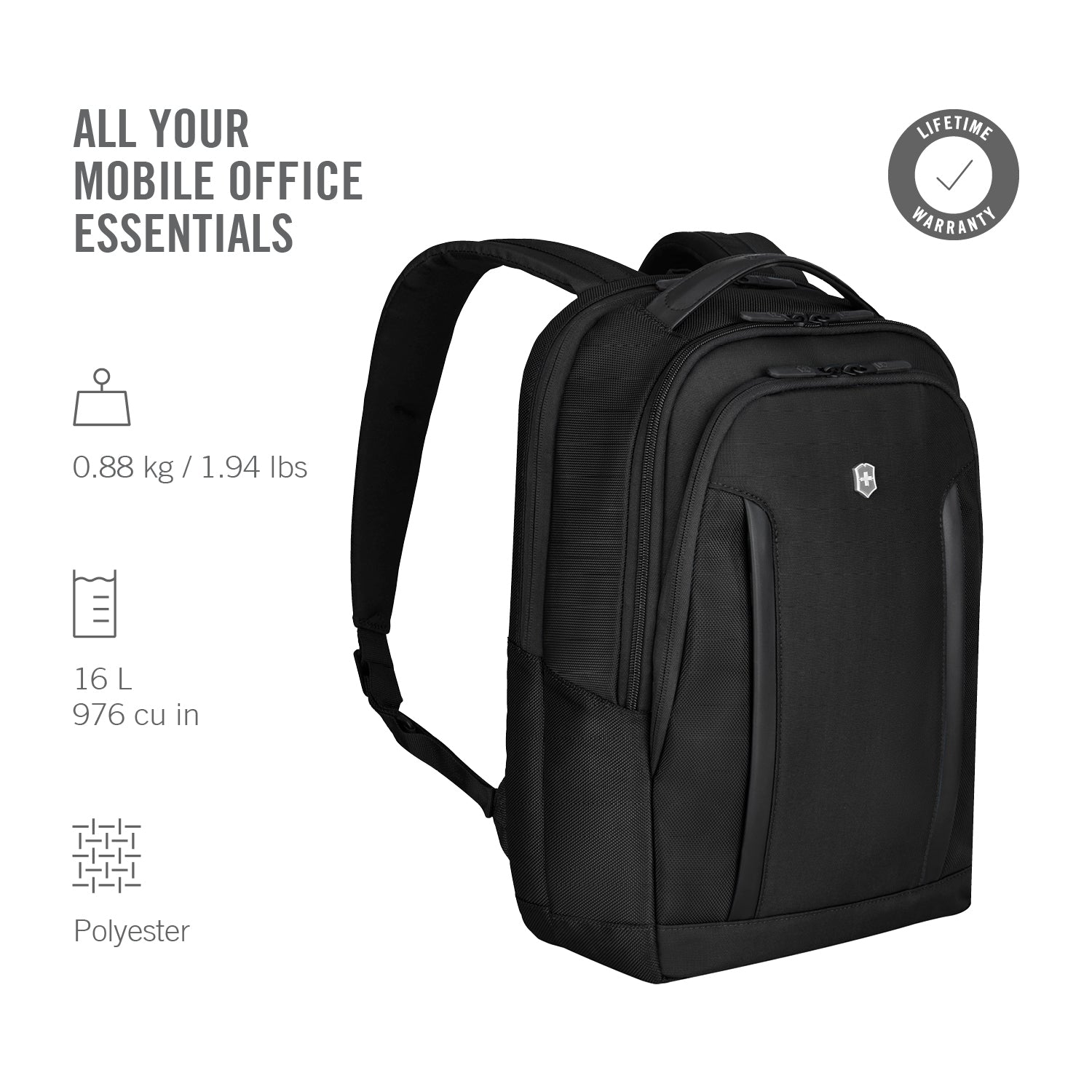 Inspired by the Victorinox Swiss Army Knife itself, Victorinox combined their Alpine rucksack engineering knowledge with a deep understanding of modern business needs for the Altmont Professional Compact Laptop Backpack. This slimline, minimalist pack accompanies you on every journey through the professional landscape; its durable exterior punctuated both by a flip-down front pocket with inserts, loops and enclosures for keys, valuables, wallets and smaller devices, and a top-loading zipped area with sections for both a laptop and an iPad. With the Deluxe Fliptop Laptop Backpack you can be confident that everything you need to stay focused and equipped is with you, whether you're working remotely or traveling to make important face-to-face connections.