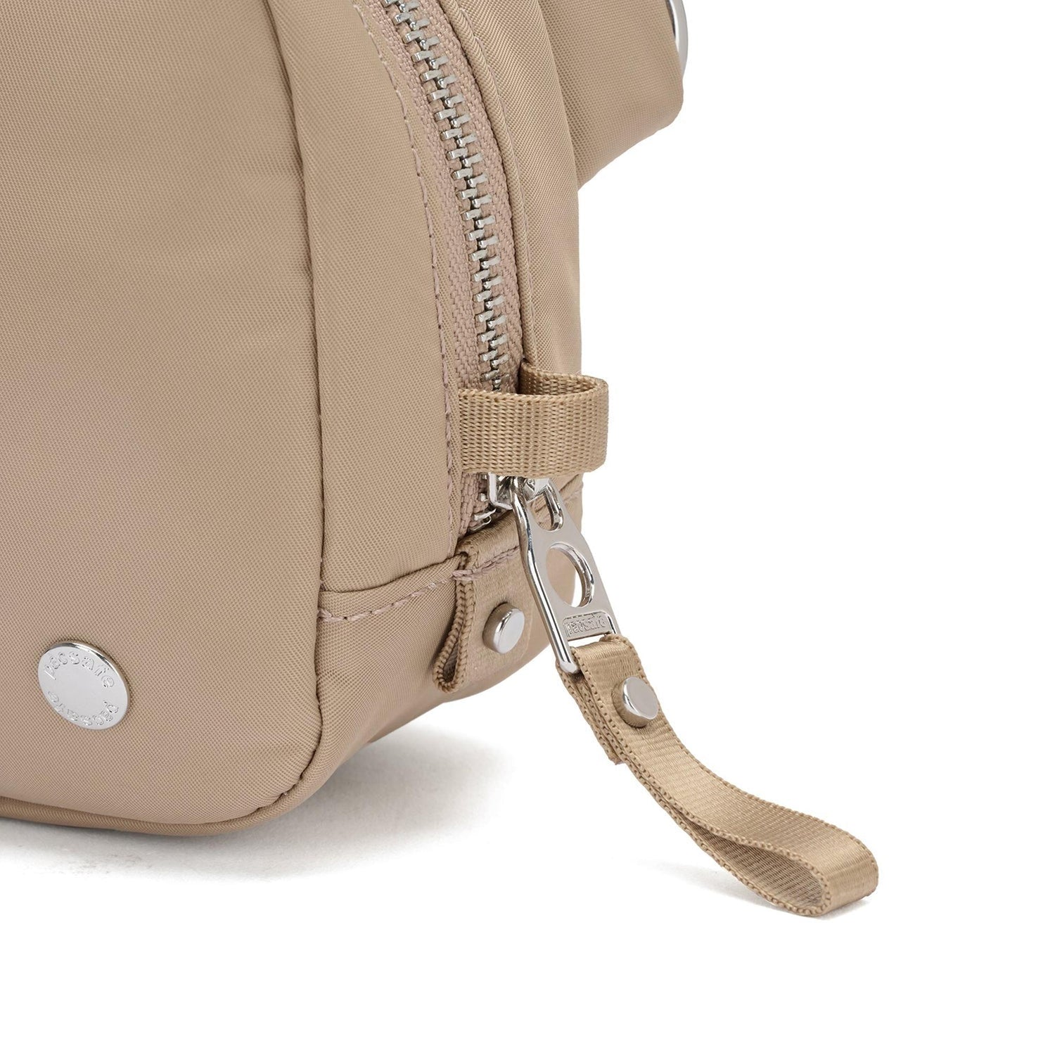 The Pacsafe W Micro Sling's sleek design seamlessly complements any attire. Store your phone, makeup, tissues, and AirPods, securing the compartment using the Zip Tab feature. Despite its compact size, it offers organizational capabilities, featuring two internal zippered pockets. One pocket is equipped with RFID blocking material to protect your passport and cards, while the other is dedicated to storing your small items with ease.