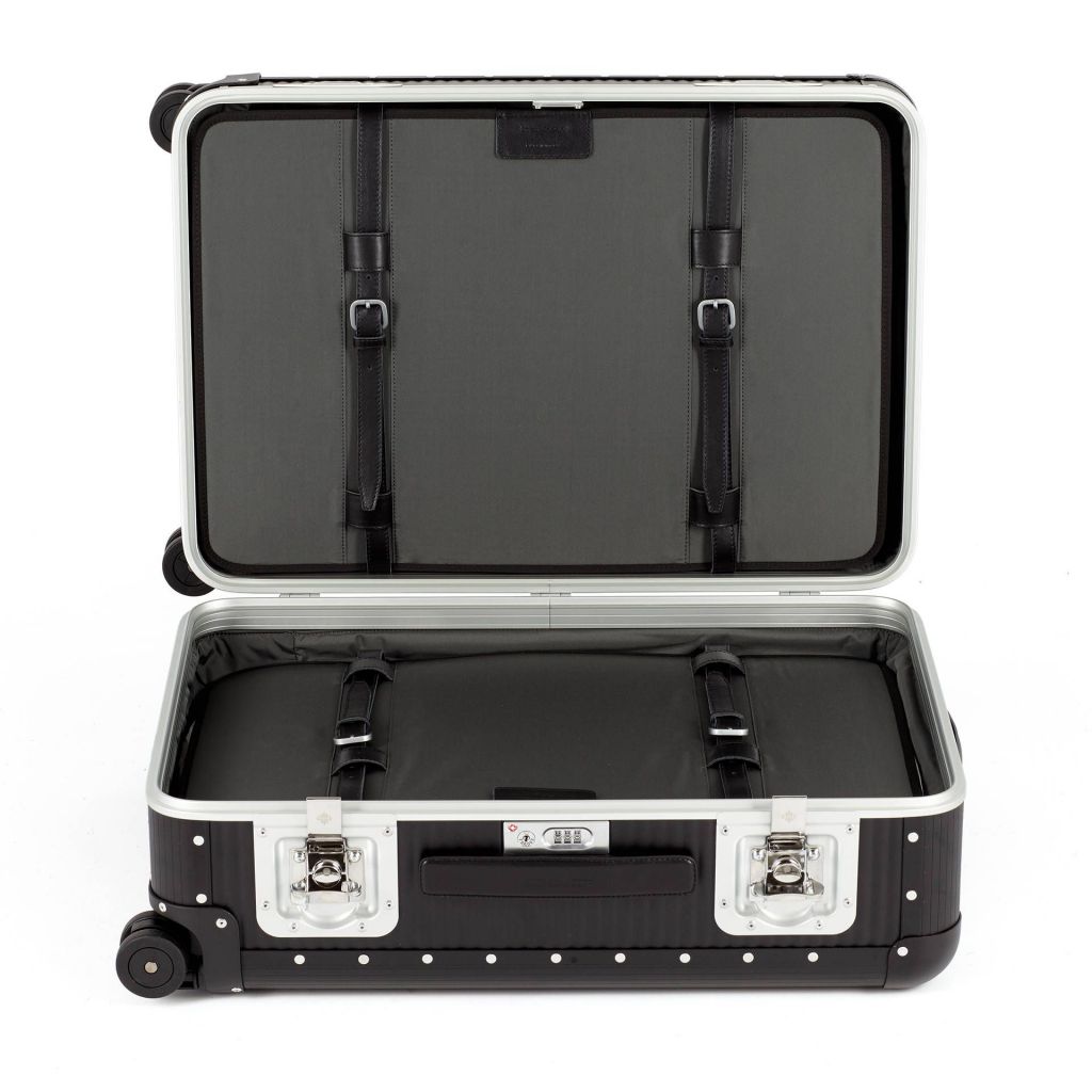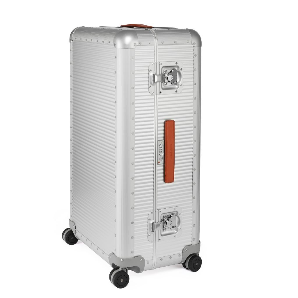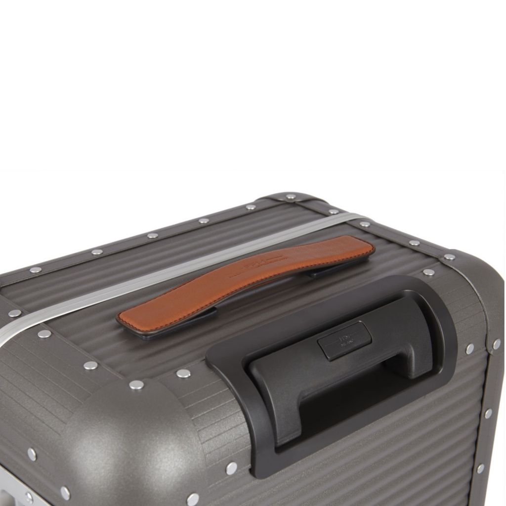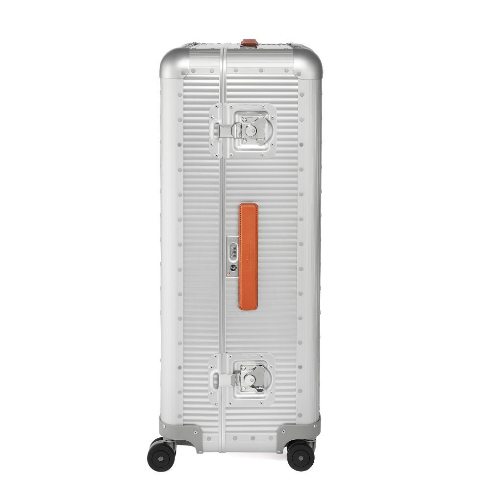 Spinner 84 – 100% Aluminum. 4-wheeled suitcase. The dual wheels guarantee great stability and smoothness. The suitcase has an incorporated TSA lock combined with two maxi butterfly locks that ensures safety. The two handles are fine Italian leather, embossed with the FPM logo. The interior of the suitcase includes handcrafted belts in fine Italian leather. The lining is padded and removable. The interior organizer allows for optimum arrangement of contents. Ideal for 14/15-day journeys.