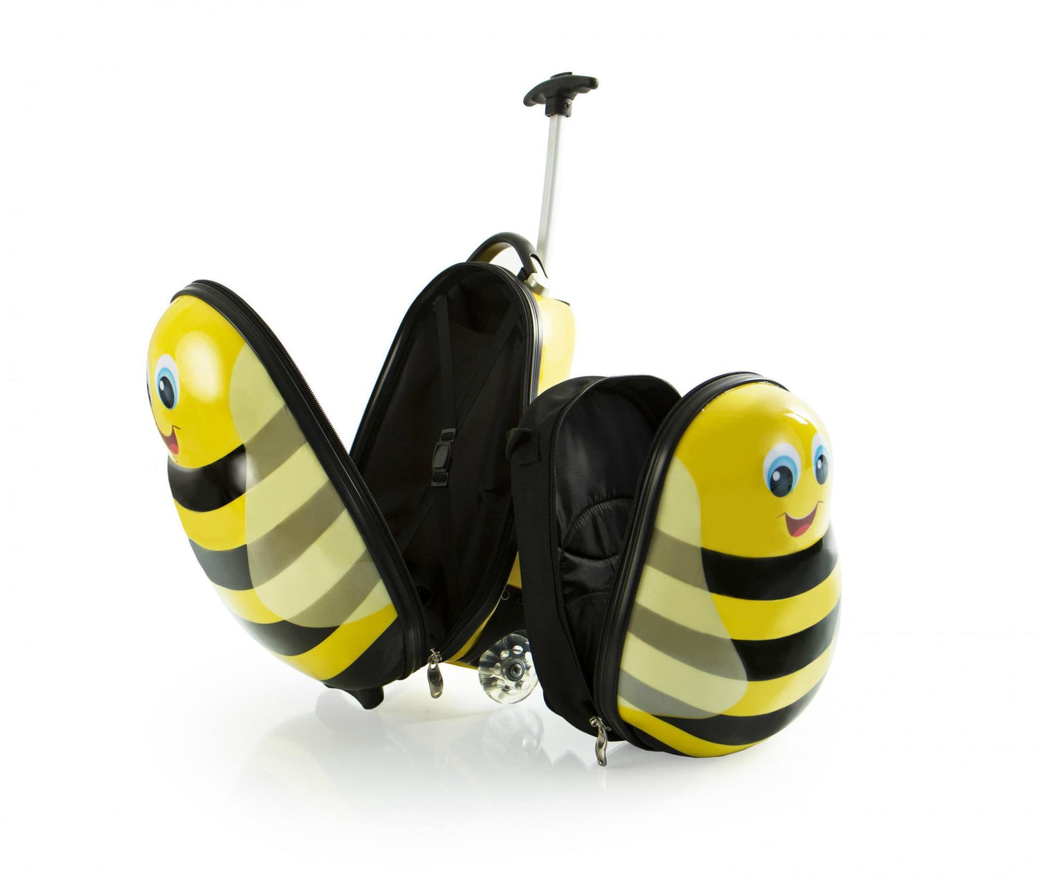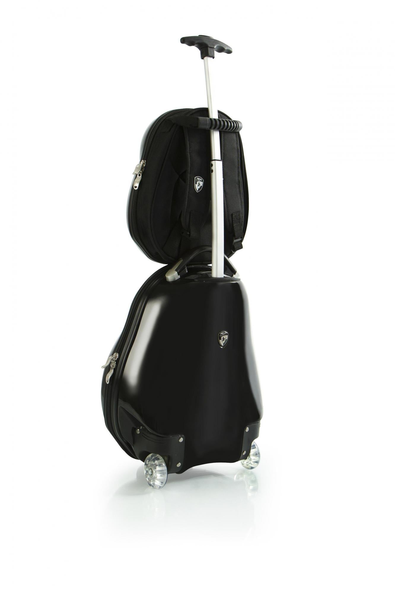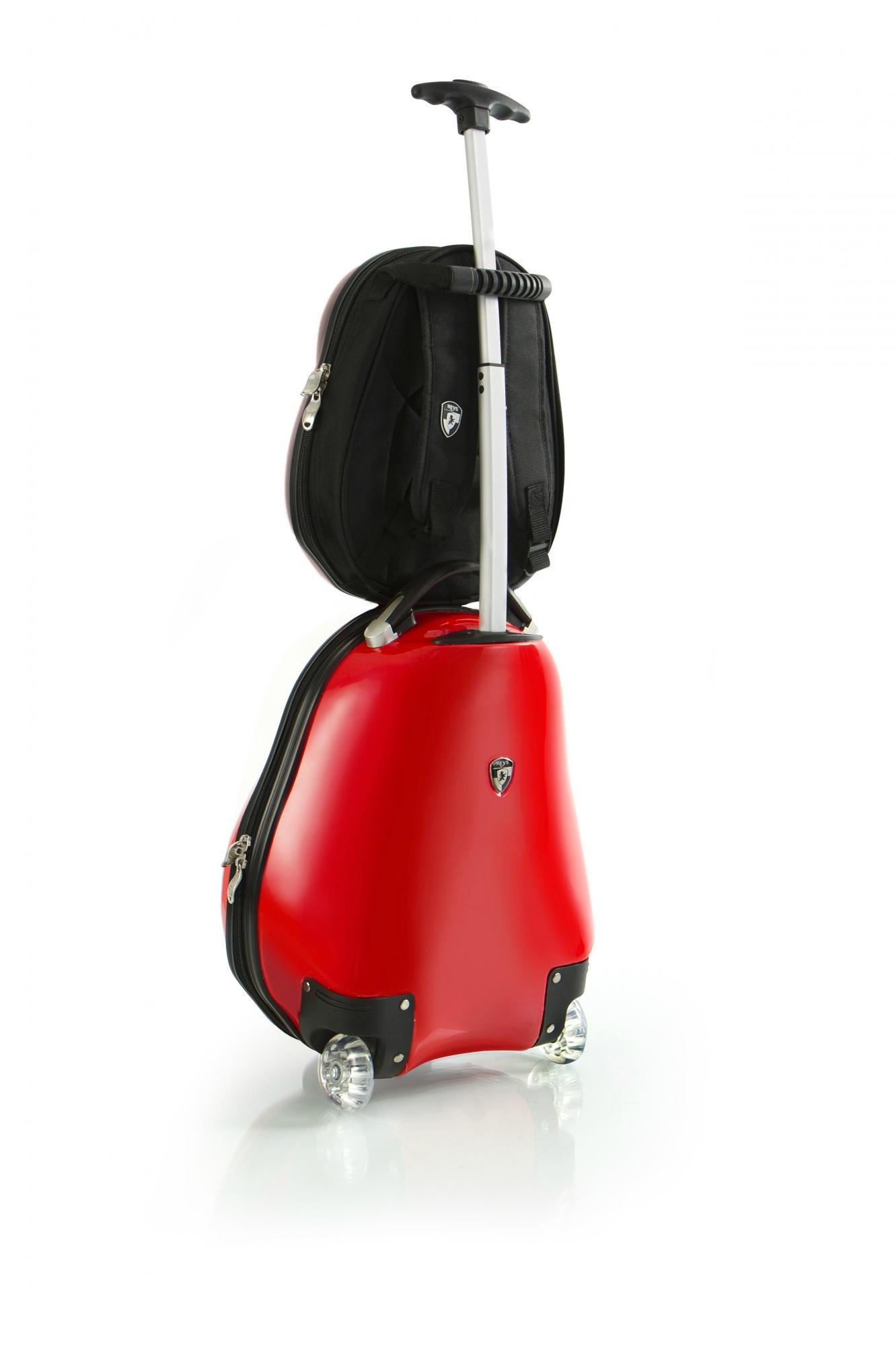 The Travel Tots 2 Piece Kids Luggage & Backpack Set is the perfect travel companion for your little ones. The Travel Tots collection was created by Heys with the unique characteristics of children in mind, incorporating several design features that benefit children. Each piece has been printed with colourful and vibrant artwork adding loads of fun to traveling for the kids and the entire family. The luggage print is protected by a layer of clear coat which also gives it a beautiful glossy shine. The patent-pending design of this case also allows the wheels to protrude out keeping the case elevated preventing the bottom of the luggage from touching the ground. With the luggage only weighing in at a mere 3.5 lbs., children can wheel these fun cases around, as they also feature in-line skate wheels that make rolling even smoother. Both the luggage and backpack piece have zipper closure system, when opened reveals a beautifully lined interior. The Travel Tots luggage is carry-on approved.
