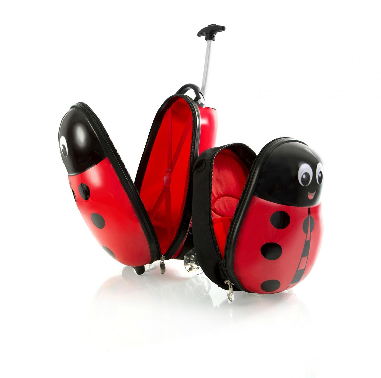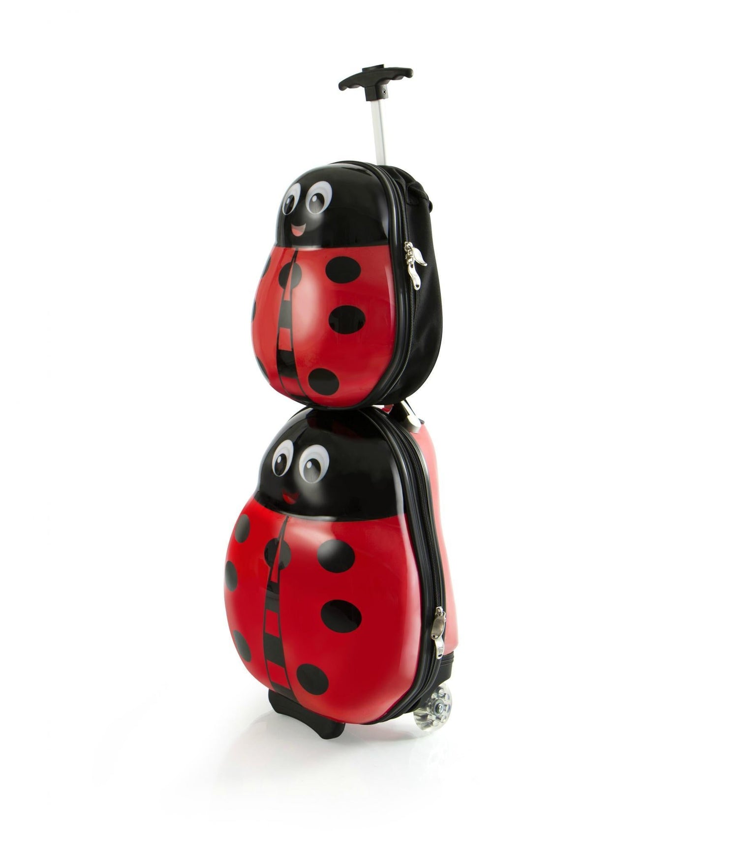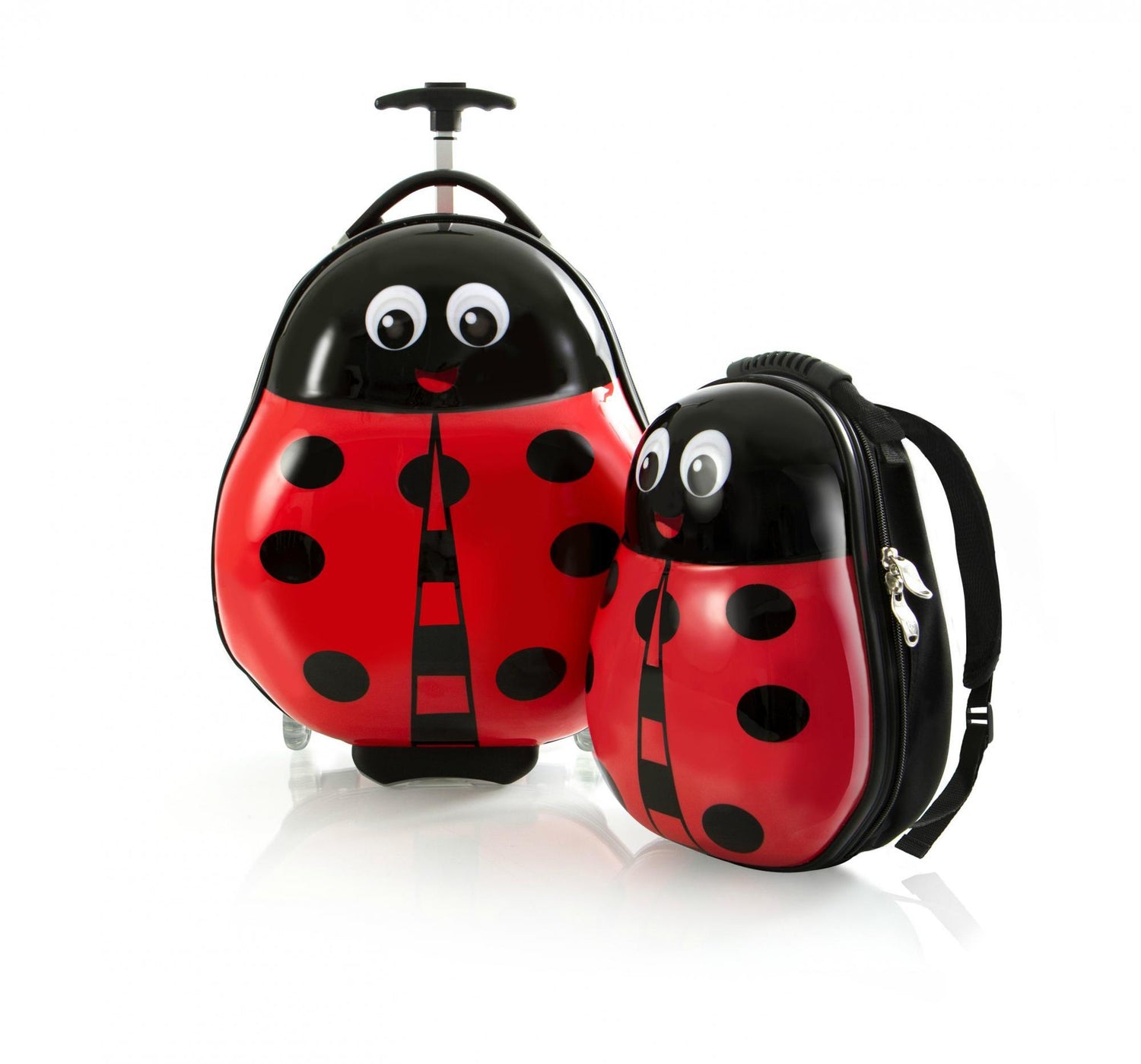 The Travel Tots 2 Piece Kids Luggage & Backpack Set is the perfect travel companion for your little ones. The Travel Tots collection was created by Heys with the unique characteristics of children in mind, incorporating several design features that benefit children. Each piece has been printed with colourful and vibrant artwork adding loads of fun to traveling for the kids and the entire family. The luggage print is protected by a layer of clear coat which also gives it a beautiful glossy shine. The patent-pending design of this case also allows the wheels to protrude out keeping the case elevated preventing the bottom of the luggage from touching the ground. With the luggage only weighing in at a mere 3.5 lbs., children can wheel these fun cases around, as they also feature in-line skate wheels that make rolling even smoother. Both the luggage and backpack piece have zipper closure system, when opened reveals a beautifully lined interior. The Travel Tots luggage is carry-on approved.