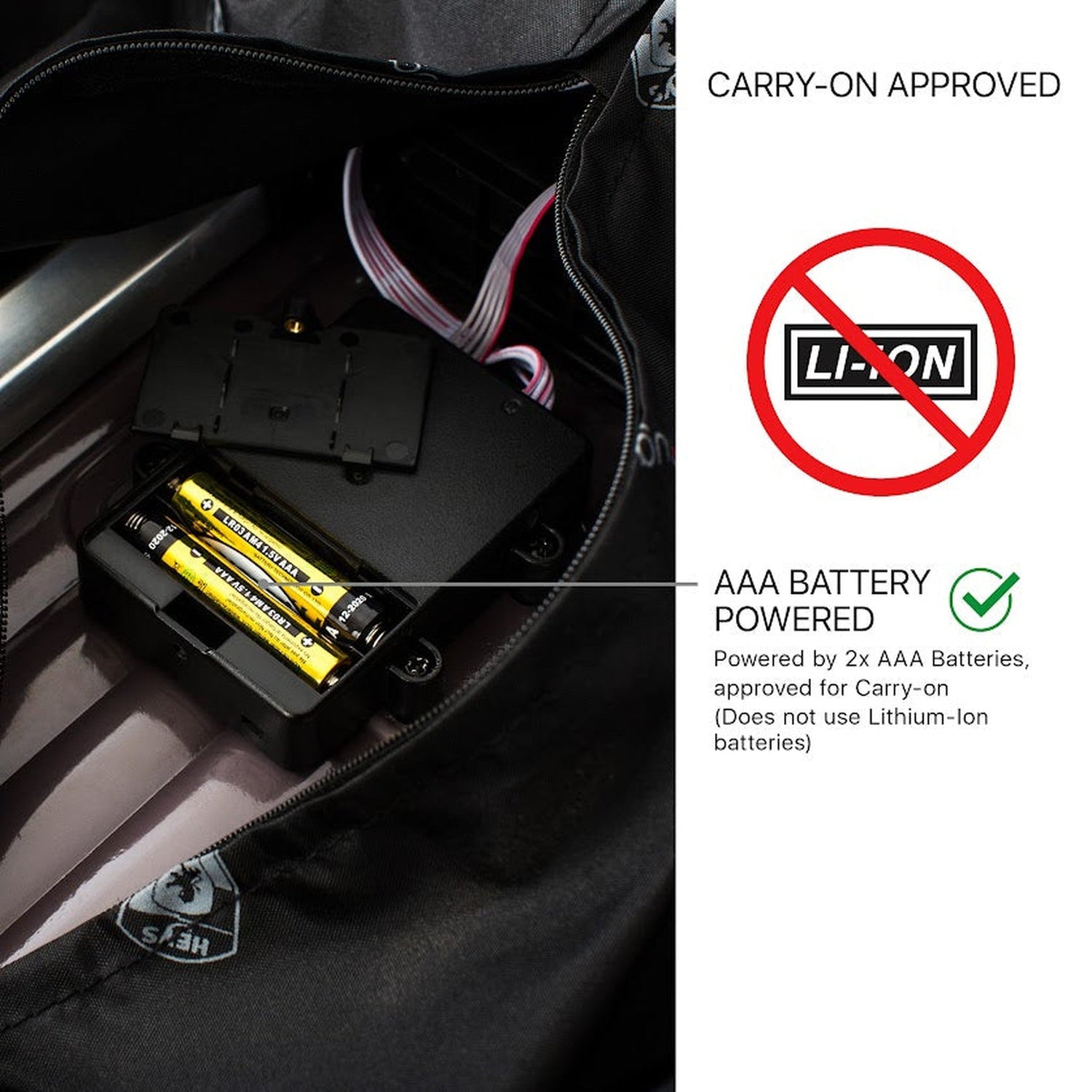 - Powered by 2x AAA Batteries, approved for Check-in (Does not use Lithium-Ion batteries).